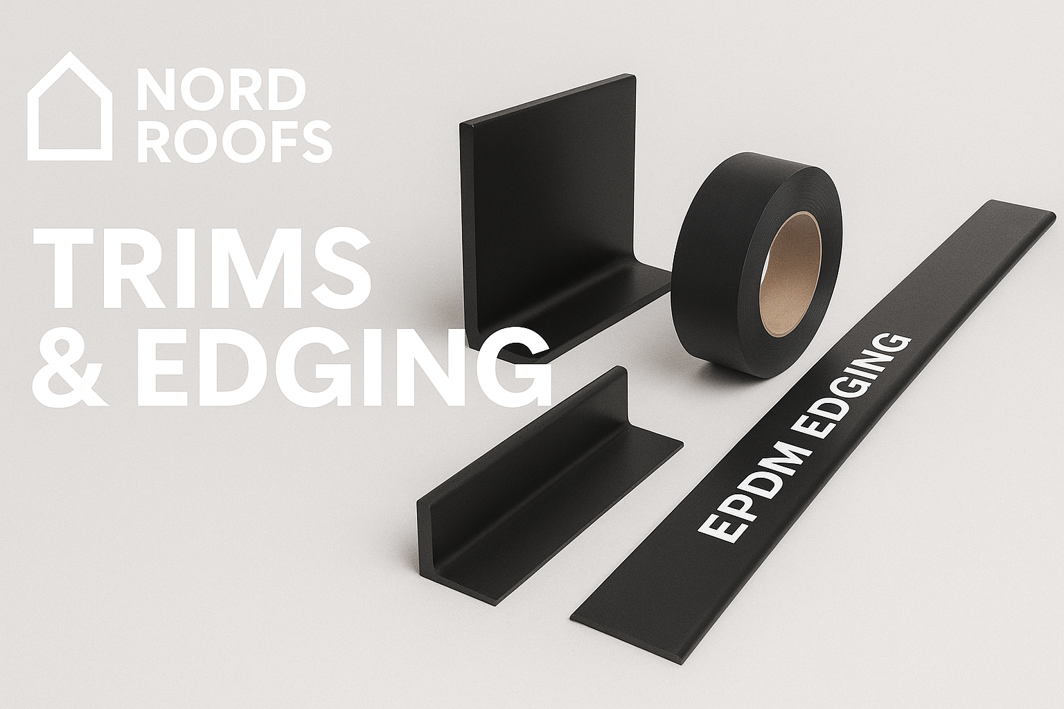 Our EPDM Trims & Edging range provides a clean, watertight and professional finish for EPDM rubber roofing systems. At Nord Roofs, we supply high-quality edge trims, kerb trims, drip trims, angle profiles and termination bars designed to secure the membrane, manage rainwater, protect roof perimeters, and ensure long-term performance.