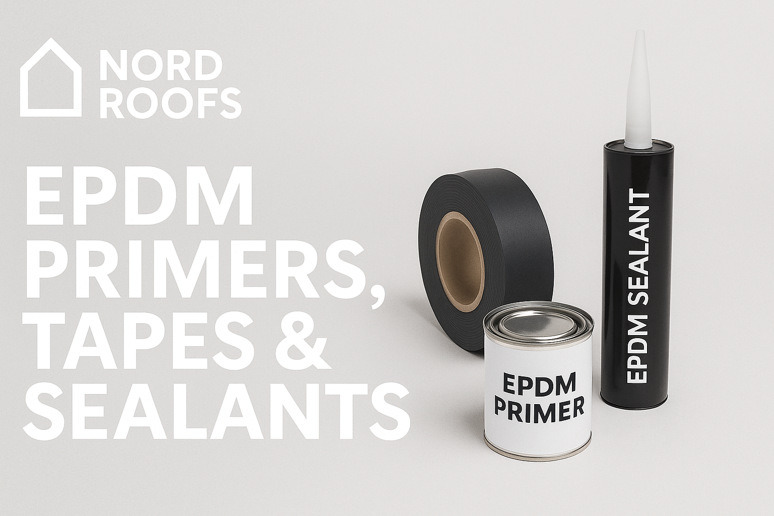 Our EPDM Primers, Tapes & Sealants range provides everything needed for secure, durable and watertight EPDM roofing installations. At Nord Roofs, we supply high-performance primers for surface preparation, pressure-sensitive tapes for seams and joints, and high-quality sealants for detailed waterproofing around corners, pipes, outlets and penetrations.